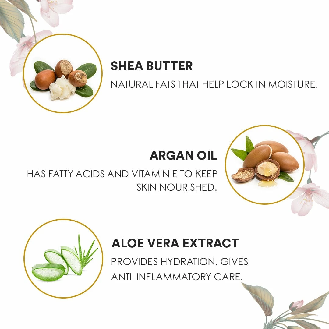Powered with Shea Butter, Argan Oil, Honey, Aloe Vera Extract & Vitamin E.