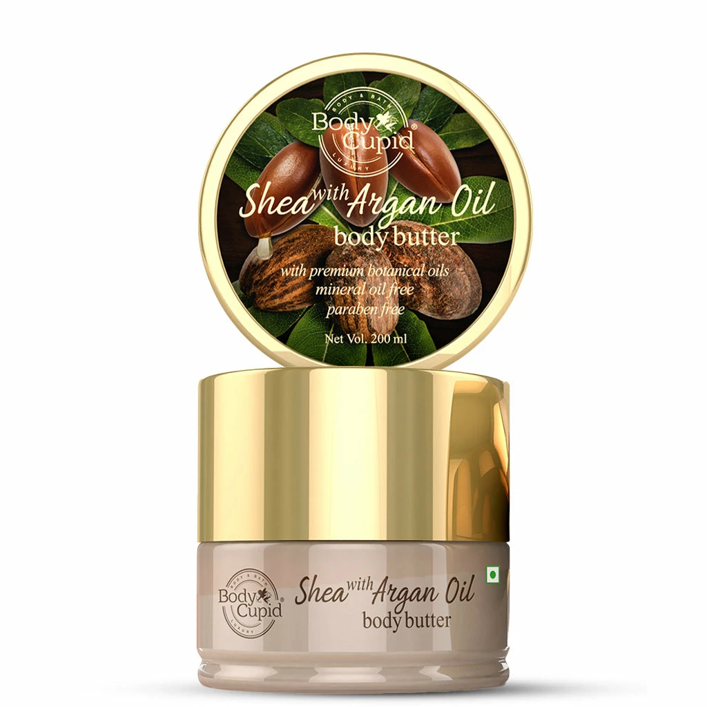 Body Cupid Shea with Argan Oil Body Butter helps soothe, heal and restore your skin’s natural glow. A pampering formulation with protective goodness, it has pure argan oil – also known as liquid gold due to its skin-nurturing goodness – along with shea butter, honey, vitamin E and many more prized actives. Regular application not only helps keep skin amply moisturized, it also helps reduce inflammation, stretch marks, dryness and signs of aging.