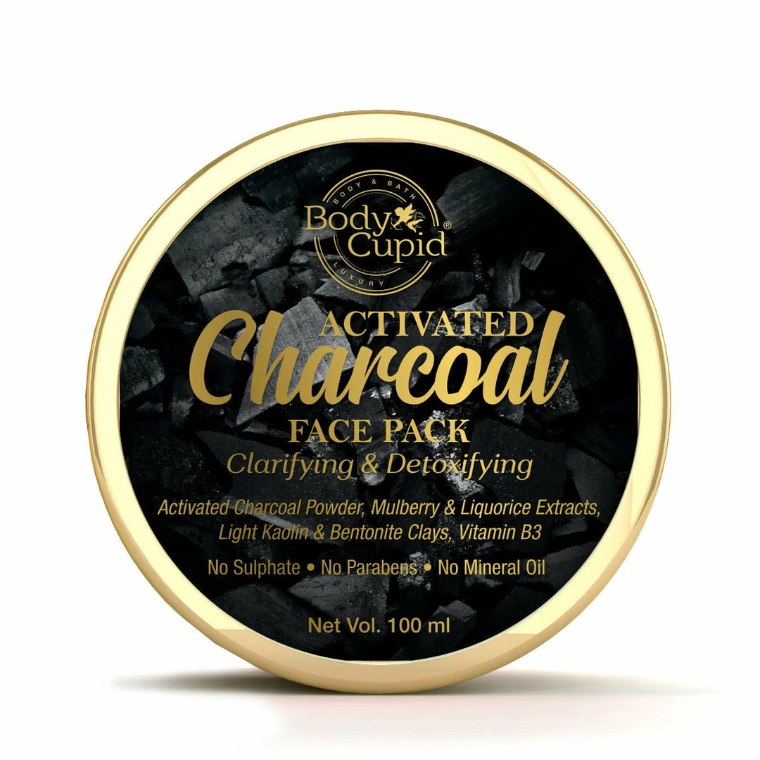 Give your face a spa-level clarifying and detoxifying treatment to tackle damage caused by pollution with Body Cupid Activated Charcoal Face Pack. It has pure Activated Charcoal Powder to remove pollutants, dead skin cells, and impurities from skinโs surface and within pores. It has Light Kaolin and Bentonite Clays with volcanic minerals to remove impurities. Plus, Mulberry and Liquorice Extracts to help lighten blemishes; and Vitamin B3 to boost skinโs softness.