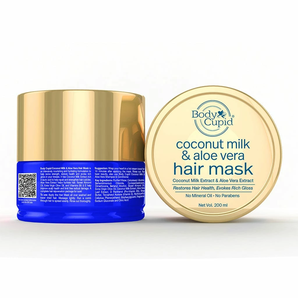 Body Cupid Coconut Milk & Aloe Vera Hair Mask is an intensively nourishing and deeply hydrating formulation to help revive strength, restore health and evoke rich gloss in your tresses.