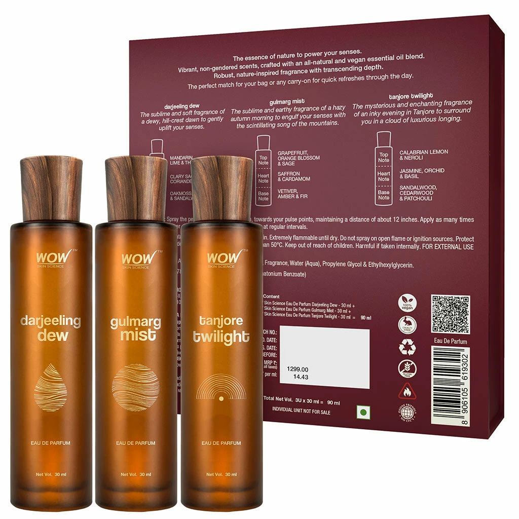 Darjeeling Dew: Fresh and Zesty All-Day Perfume Our Eau De Parfum Darjeeling Dew belongs to a moment in nature. It is a sublime fragrance, full of fresh notes, that evoke memories of the dew-drenched dawn in the mountains of Darjeeling. This full-bodied all-day fragrance perfume has a zesty and fresh bouquet that makes a lasting impression – transporting you to a memory of lush natural surroundings. It is inspired by the crisp scents that remind you of the freshness of the mountains and mornings at high altitudes. The fragrance begins with the citrusy notes of mandarin, lime, and thyme that slowly transition into herbaceous heart notes of clary sage, coriander, and peony, then finally settling into the warm, woody notes of oakmoss, vetiver, and sandalwood.