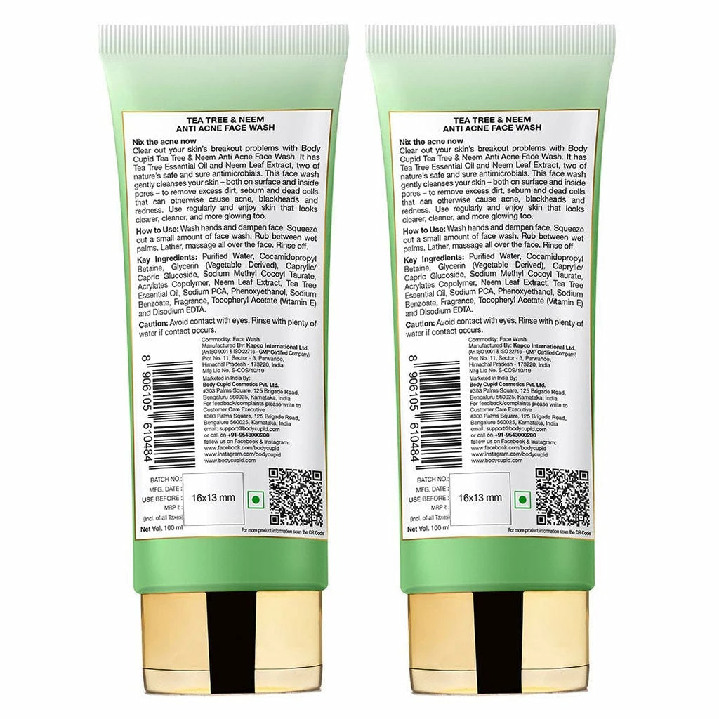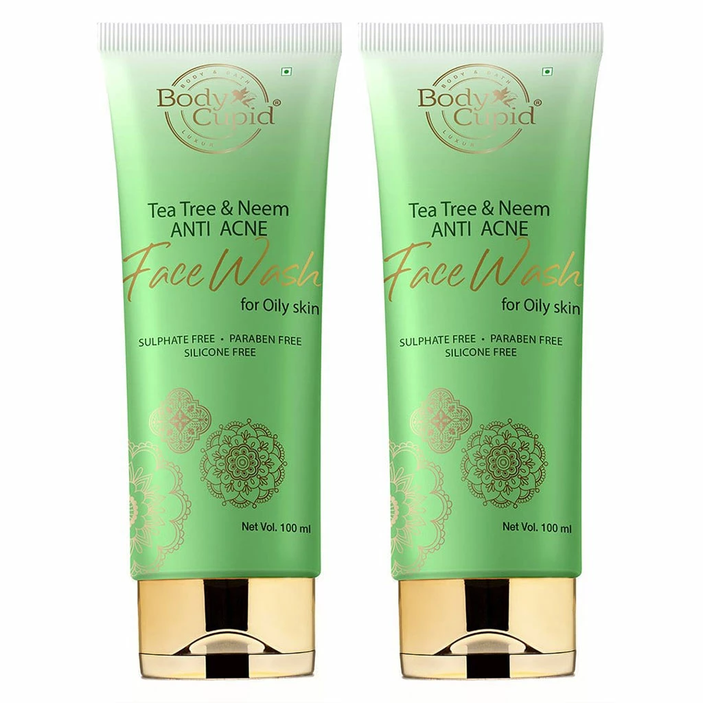 Body Cupid Tea Tree and Neem Anti Acne Face Wash helps clear out skin’s acne and breakout problems. It has Tea Tree Essential Oil and Neem Leaf Extract, two of nature’s safe and sure antimicrobials. This face wash gently cleanses your skin – both on surface and inside pores – to remove excess dirt, sebum and dead cells that can otherwise cause acne, blackheads and redness. Use regularly for skin clearer, cleaner, and more glowing skin.