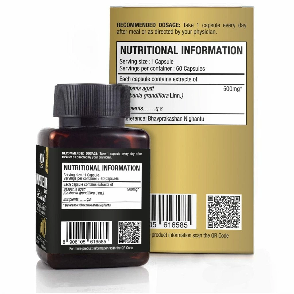 Ayurvedic Biotin Capsules is made from Sesbania agati ,Sesbania grandiflora, also known as Agathi Keerai or the vegetable hummingbird, a small loosely branching tree belonging to the family Fabaceae and genus Sesbania. Agathi Keerai typically means the green leaves of the plant, a fast-growing tree that grows in a hot humid climate. Agathi leaves are the best sources of Vitamin A, Calcium, and Phosphorus among all the green leafy vegetables.