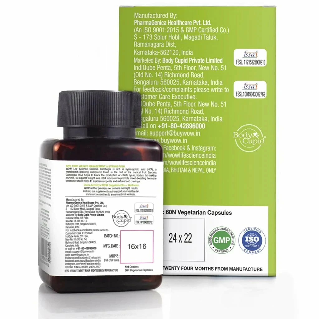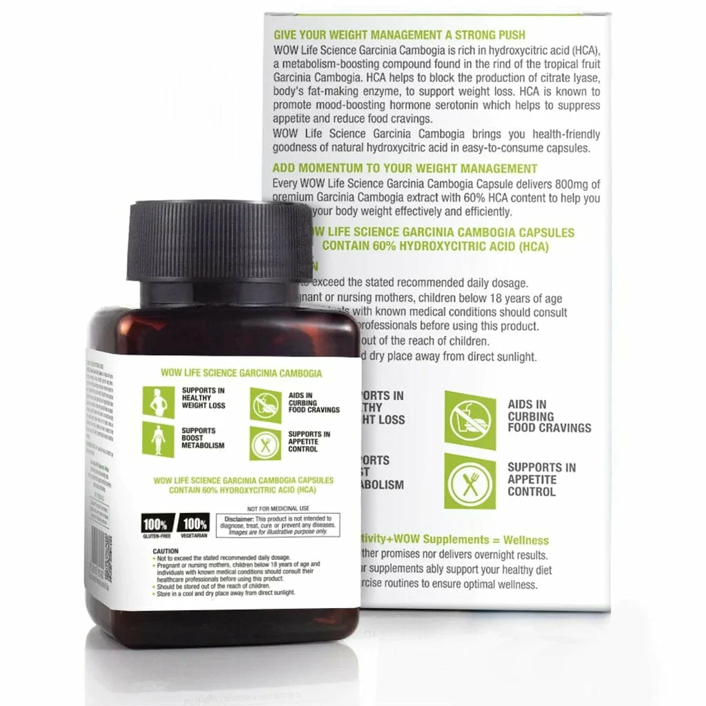 {“@context”:”https://schema.org”,”@type”:”FAQPage”,”mainEntity”:[{“@type”:”Question”,”name”:”WHAT IS GARCINIA CAMBOGIA? WHAT IS SO SPECIAL ABOUT IT?”,”acceptedanswer”:{“@type”:”Answer”,”text”:”Garcinia Cambogia is a tropical tree found in East Asia. It is also known as Malabar tamarind. Its fruits are sour in taste and look like small pumpkins. The rinds of these fruits are particularly rich in hydro citric acid (HCA), which can immensely help with effective weight management. That is why Garcinia Cambogia is now the most talked-about natural weight loss supplement.”}},{“@type”:”Question”,”name”:”WHAT IS HYDROXY CITRIC ACID? HOW DOES IT HELP BOOST FAT BURN?”,”acceptedanswer”:{“@type”:”Answer”,”text”:”Hydroxycitric acid or HCA is a natural compound (a derivative of citric acid) found in tropical plants such as Garcinia Cambogia. HCA acts as a blocker of an enzyme called citrate lyase that plays a key role in turning the surplus glucose in the body to fat. By helping to block the conversion of sugars into fats, it promotes fat burn and metabolism. Hence, it can help manage body weight. Another key quality of HCA is its ability to boost serotonin hormone levels in the body. The presence of serotonin, also called happy hormone, curbs emotional eating and food binging.”}},{“@type”:”Question”,”name”:”WHY SHOULD I OPT FOR WOW GARCINIA CAMBOGIA CAPSULES?”,”acceptedAnswer”:{“@type”:”Answer”,”text”:”WOW garcinia cambogia capsules contains the best-quality and pure Garcinia Cambogia extract sourced from Indonesia. It has a high 60% hydroxycitric acid content to support effective weight management. With WOW, you get the real deal and visible effects.”}},{“@type”:”Question”,”name”:”WHAT ELSE CAN I DO, APART FROM TAKING THESE CAPSULES TO MANAGE MY BODY WEIGHT?”, “acceptedanswer”:{“@type”: “Answer”, “text”: “Regular walks (starting with 30 minutes a day), simple stretches, and the habit of doing household chores are excellent at assisting with healthy weight loss. You should also avoid sugary, starchy and oily food as much as you can. Instead, eat more fresh fruits and vegetables. Drinking 8 to 10 glasses of water will also help.”}},{“@type”:”Question”,”name”:”ARE THERE ANY NEGATIVE EFFECTS OF TAKING THIS SUPPLEMENT?”,”acceptedanswer”:{“@type”:”Answer”,”text”:”Being 100% pure natural fruit extract placed inside 100% veggie capsules, WOW Life Science Garcinia Cambogia is a safe dietary supplement. Moreover, Garcinia Cambogia fruit has been used in eastern cuisines for hundreds of years as a souring agent. Yet, do consult your healthcare professional; if you are pregnant, nursing, under 18, have any serious medical history or if you are on any prescription medicines.”}},{“@type”:”Question”,”name”:”IS GARCINIA CAMBOGIA CAPSULES SAFE TO USE?”,”acceptedAnswer”:{“@type”:”Answer”,”text”:”Our garcinia cambogia capsules is a natural way to improve health. It’s an excellent choice for people who want to improve the condition of their health without using harsh chemicals or artificial ingredients.”}},{“@type”:”Question”,”name”:”IS WOW GARCINIA CAMBOGIA CAPSULES VEGAN AND GLUTEN-FREE?”,”acceptedAnswer”:{“@type”:”Answer”,”text”:”We are proud to say that our garcinia cambogia capsules is both vegan and gluten-free. We never test on animals, and we only use natural ingredients in our products.”}},{“@type”:”Question”,”name”:”ARE THE INGREDIENTS OF WOW GARCINIA CAMBOGIA CAPSULES REALLY NATURAL?”,”acceptedAnswer”:{“@type”:”Answer”,”text”:”You will love the way your health feels after using our garcinia cambogia capsules. It is made with natural ingredients that benefit your health.”}},{“@type”:”Question”,”name”:”CAN I USE GARCINIA CAMBOGIA CAPSULES EVERY DAY?”,”acceptedAnswer”:{“@type”:”Answer”,”text”:”Our garcinia cambogia capsules is an everyday use. It has multiple restorative properties that help your overall health and wellness. You can use it on daily basis.”}}]}