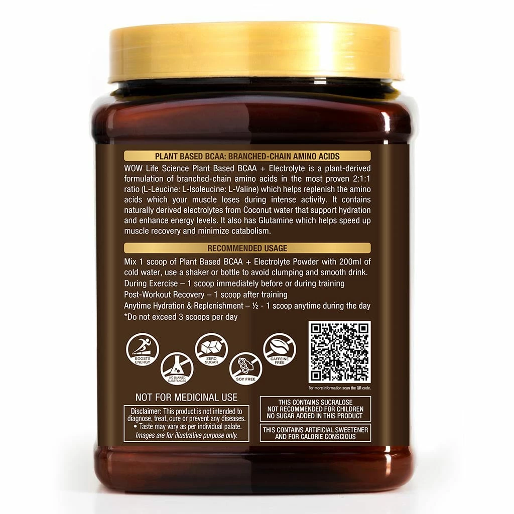 Plant Based BCAA Powder is a plant-derived formulation of branched-chain amino acid in the most proven 2:1:1 ratio (L-Leucine: L-Isoleucine: L-Valine), which helps replenish the amino acids which your muscle loses during intense activity. It contains naturally derived electrolytes from Coconut water that support hydration and enhance energy levels. It also has Glutamine which helps speed up muscle recovery and minimizes catabolism. It helps to alleviate oxidative damage and support metabolism. It helps in muscle recovery and promotes muscle growth that keeps you healthy and fit. Each scoop of our Plant Based BCAA contains a blend of superior ingredients that assist to boost muscle recovery and supports muscle development.
