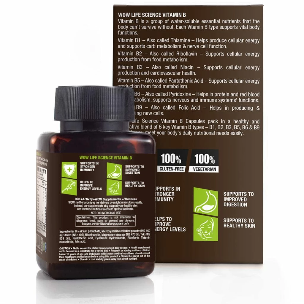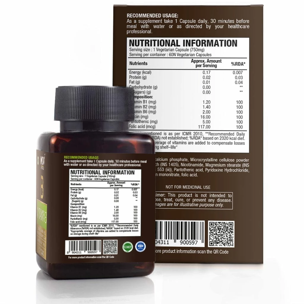 Vitamin B is a group of water-soluble essential nutrients that our body cannot survive without. Each Vitamin B type supports several vital body functions. Vitamin B1 – Also called Thiamine – Helps produce cellular energy, supports carbohydrate metabolism and nerve cell functions Vitamin B2 – Also called Riboflavin – Supports cellular energy production from food metabolism Vitamin B3 – Also called Niacin – Supports cellular energy production and cardiovascular health Vitamin B5 – Also called Pantothenic Acid – Supports cellular energy production from food metabolism Vitamin B6 – Also called Pyridoxine – Helps with protein metabolism and red blood cell metabolism, supports the functioning of nervous & immune systems. Hence, Vitamin B deficiency can result in adverse conditions such as low immunity, fatigue, hair loss, anaemia, skin disorders, vision disorders, nausea, mental confusion etc. As our bodies cannot store extra Vitamin B for future use, it is essential to get Vitamin B in sufficient amounts every single day.