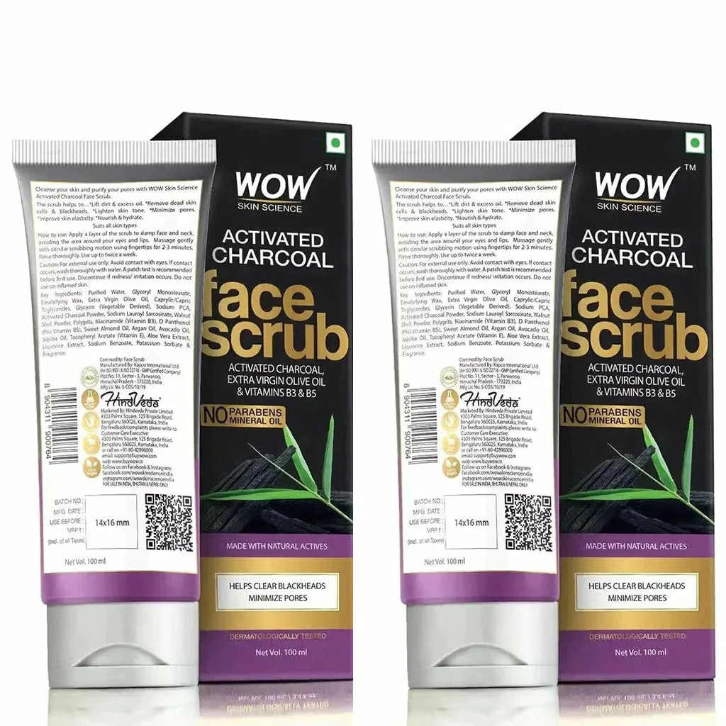 WOW Skin Science Activated Charcoal Face Scrub contains no parabens, sulfate, color, or silicones and helps to deliver maximum benefit.