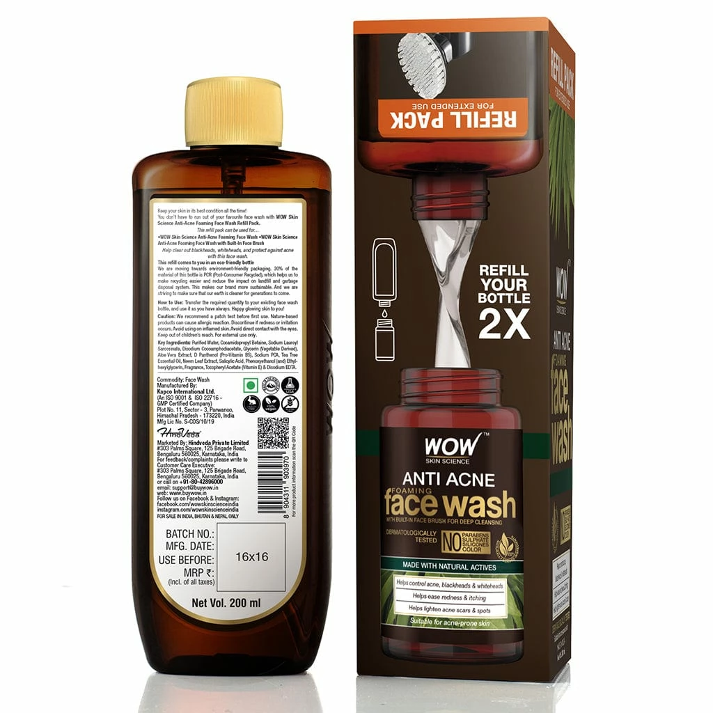 Our anti acne face wash helps to clear out blackheads and whiteheads, prevents acne eruptions, refreshes skin, and calms redness and irritation. It unclogs pores, slays acne-causing microbes, and fades blemishes and scars. It provides antioxidant protection and better nutrition for the skin for a softer feel and more even toned. It helps to keep the skin hydrated and healthy. Its regular usage helps to limit acne breakouts, lessens blackheads and whiteheads, lightens acne scars, and soothes redness. Our anti acne face wash 100% vegan gluten-free, cruelty-free, and is dermatologically tested.
