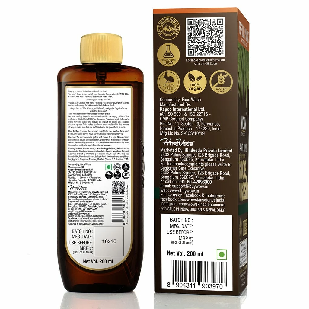 Our anti acne face wash is formulated to provide effective and bioactive-powered cleansing to acne prone and oily skin. It works to tackle acne and related issues effectively. It is powered with tea tree essential oil, extracts of neem leaf, aloe Vera Extract, mulberry and liquorice, hyaluronic acid, salicylic acid, and vitamins B5 and E for complete anti-acne action. Our anti acne face wash contains no harmful parabens or mineral oils and is made in the beautiful valleys of The Himalayas.