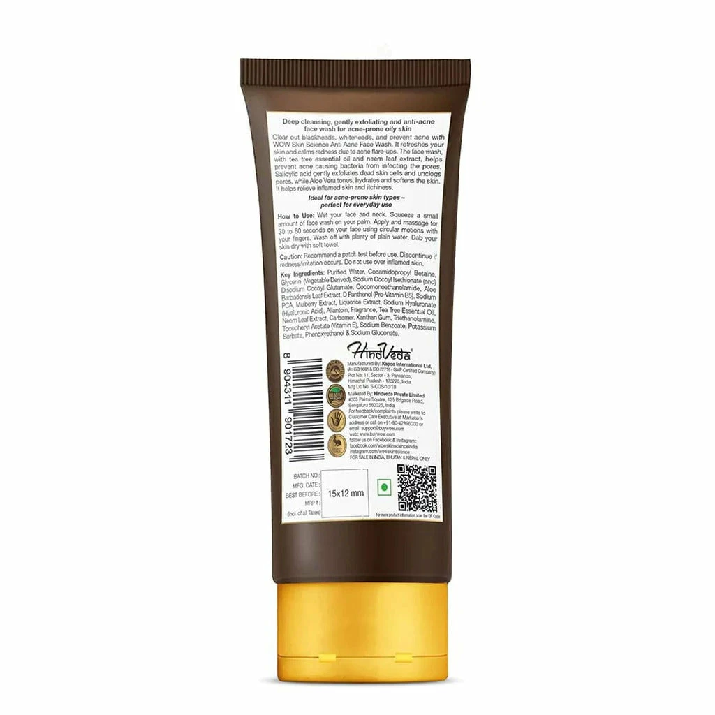 WOW Skin Science Anti Acne Face Wash is a holistic formulation that have no harmful parabens or mineral oils.