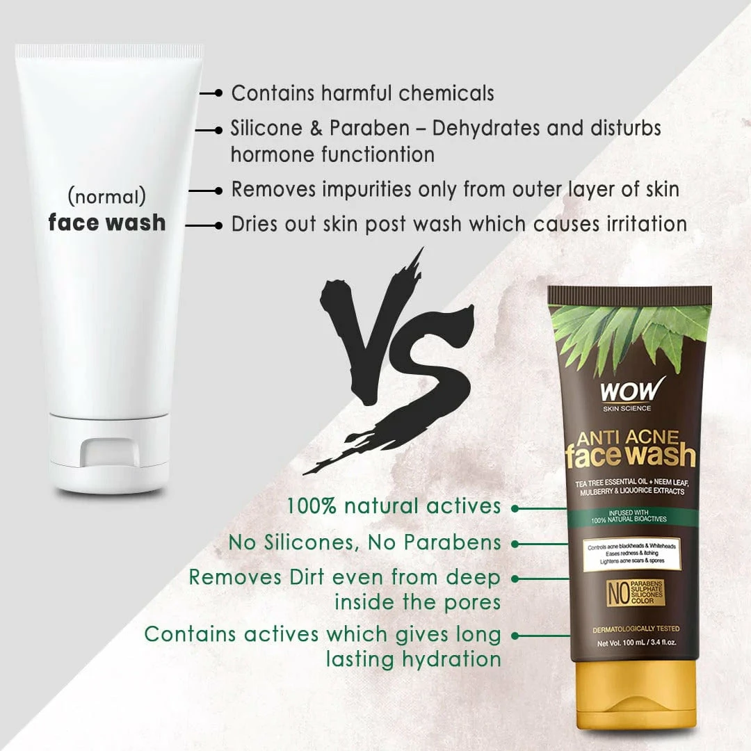 {“@type”:”Question”,”name”:”DOES ANTI ACNE FACE WASH REMOVE BLACKHEADS & WHITEHEADS?”,”acceptedAnswer”:{“@type”:”Answer”,”text”:”Our anti acne face wash contains premium bioactive ingredients that are helpful in clearing out blackheads & whiteheads.”}},{“@type”:”Question”,”name”:”ARE THE INGREDIENTS OF WOW ANTI ACNE FACE WASH REALLY NATURAL?”,”acceptedAnswer”:{“@type”:”Answer”,”text”:”Our anti acne face wash is made with natural ingredients that have been used for centuries to cleanse and nourish the skin.”}},{“@type”:”Question”,”name”:”DOES WOW ANTI ACNE FACE WASH GIVE RELIEF TO ITCHING SKIN?”,”acceptedAnswer”: