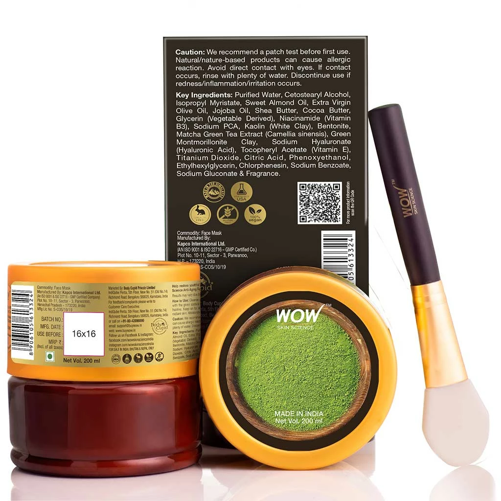 Help restore youthful glow and suppleness to dull, aging skin with WOW Skin Science Anti-Aging Fuji Matcha Green Tea Clay Face Mask. It helps to draw out deep-seated impurities and remove dead skin cells. This helps to refine and minimize pores. The mask helps to fade age spots and even out patchy skin tone, giving you a clear, smooth complexion. It clarifies skin and removes dullness. It aids in restoring skinโs natural moisture levels that improve skin elasticity and suppleness.