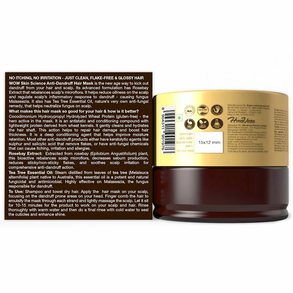 Anti dandruff hair pack has an advanced formulation has Rosebay Extract to rebalance scalp’s microflora, reduce oiliness of scalp and regulate scalp’s inflammatory response to slay Malassezia, the dandruff causing fungus. It also has Tea Tree Essential Oil, nature’s very own anti-fungal remedy, that helps neutralize fungus on scalp. Also has Hydrolyzed Wheat Protein (gluten-free) to help repair damaged hair and Moroccan Argan Oil to add shine and bounce. WOW Skin Science Anti Dandruff Hair Mask works by boosting scalp health and cutting out itching, irritation or allergies. It is suitable for all scalp and hair types.