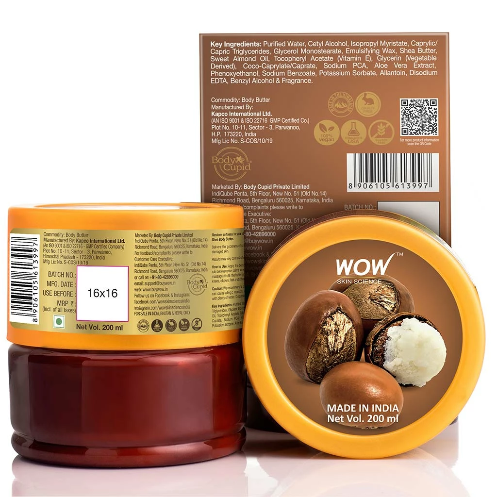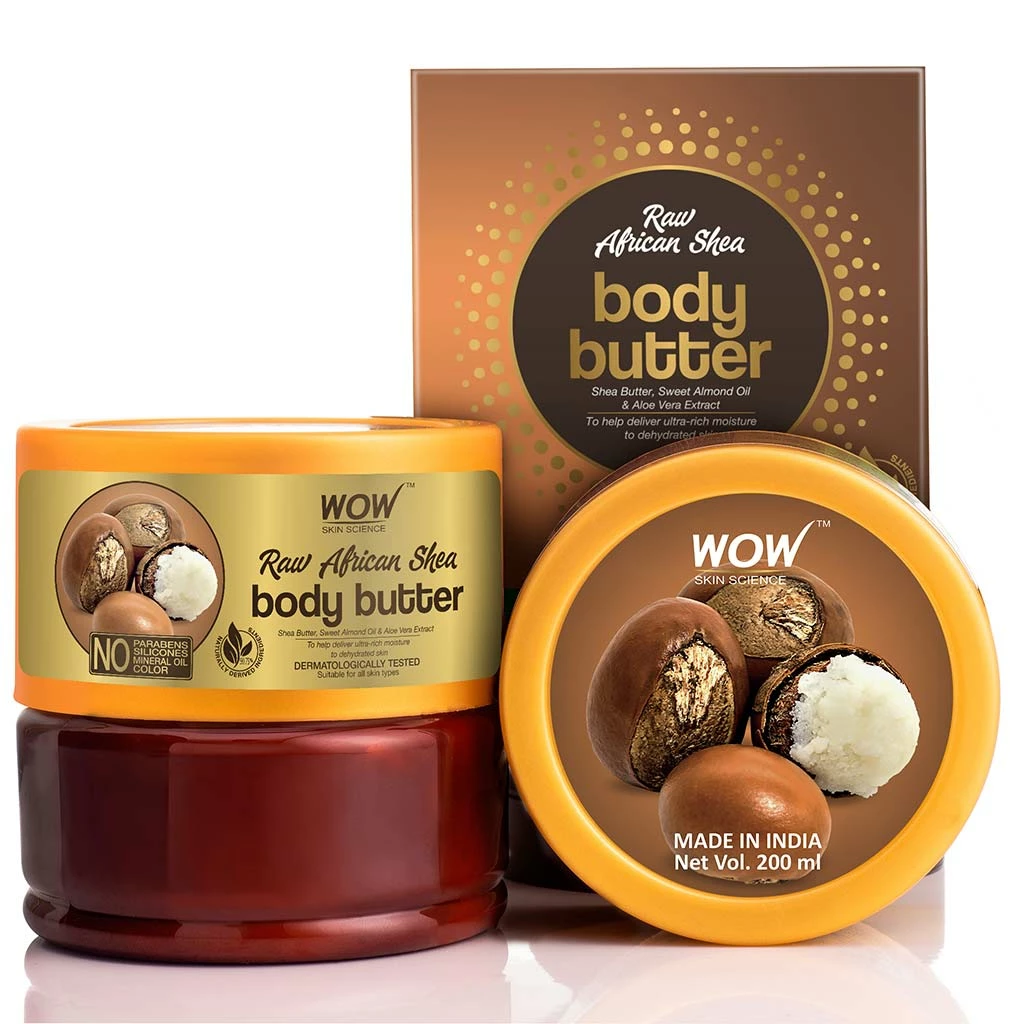 Repair and revive your dry, rough, skin with WOW Skin Science Raw African Shea Body Butter. This rich body butter delivers the goodness of shea butter and sweet almond oil, rich in vitamins A, D, B, and E to support your skin health and provide complete nourishment. This rich, creamy butter aids in reducing signs of aging, papery skin texture, scars, and excessive dryness.