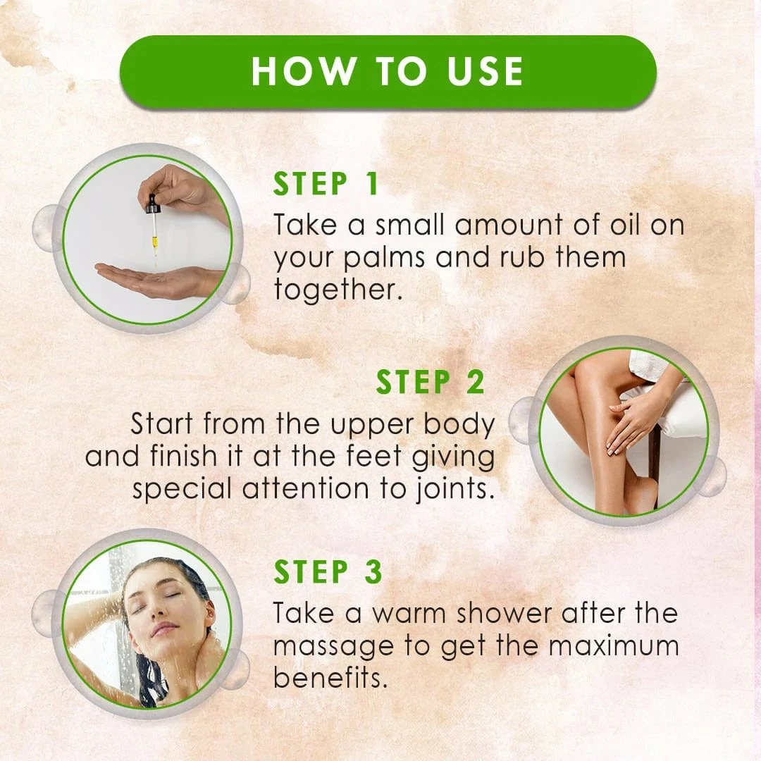 Allow it to get soaked into the body. Take a warm bath or shower after the massage to get maximum benefit.