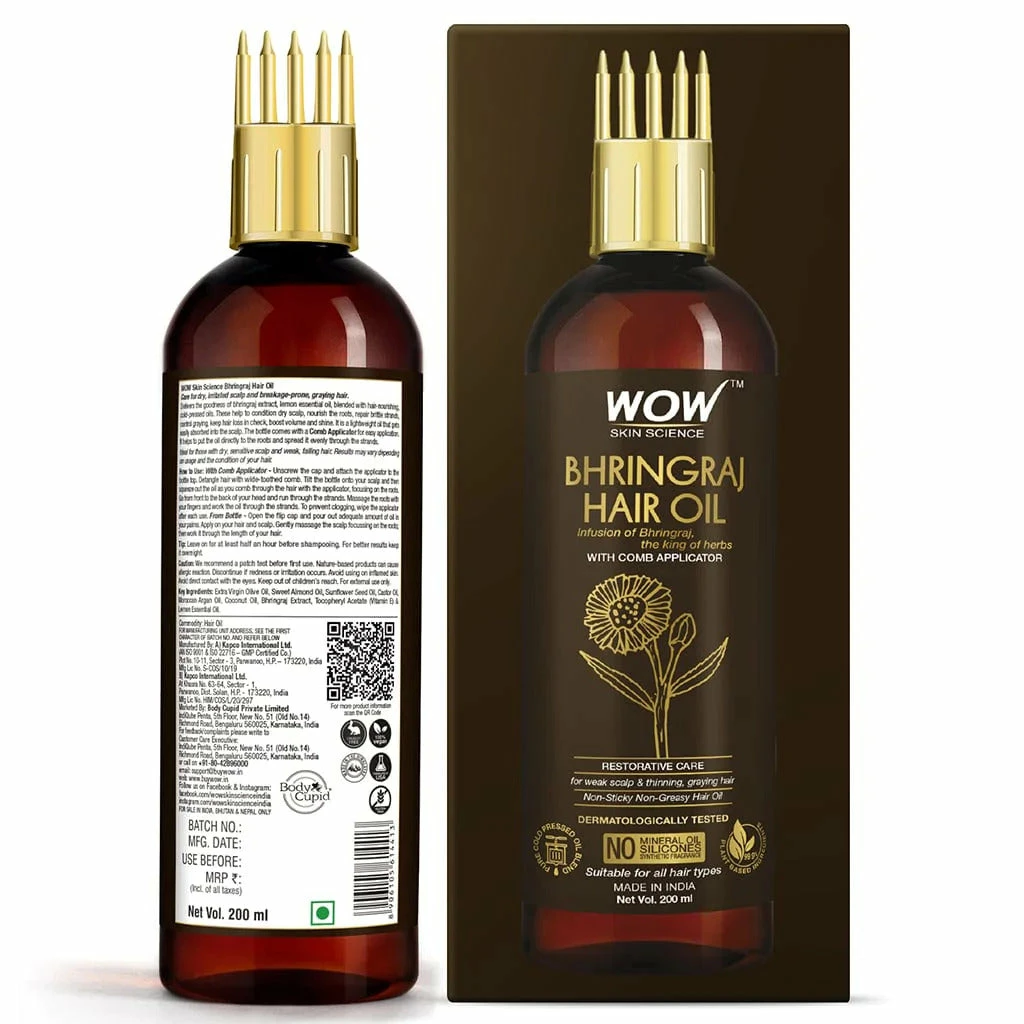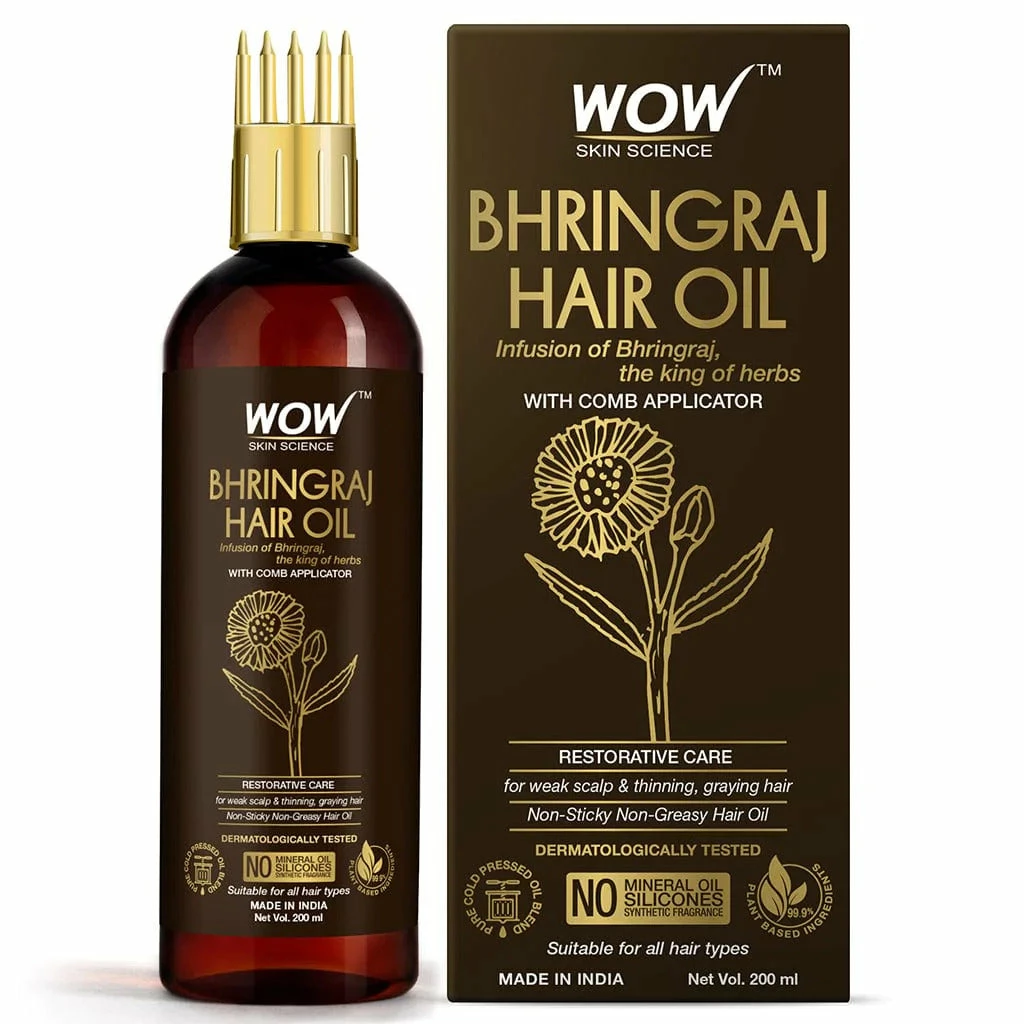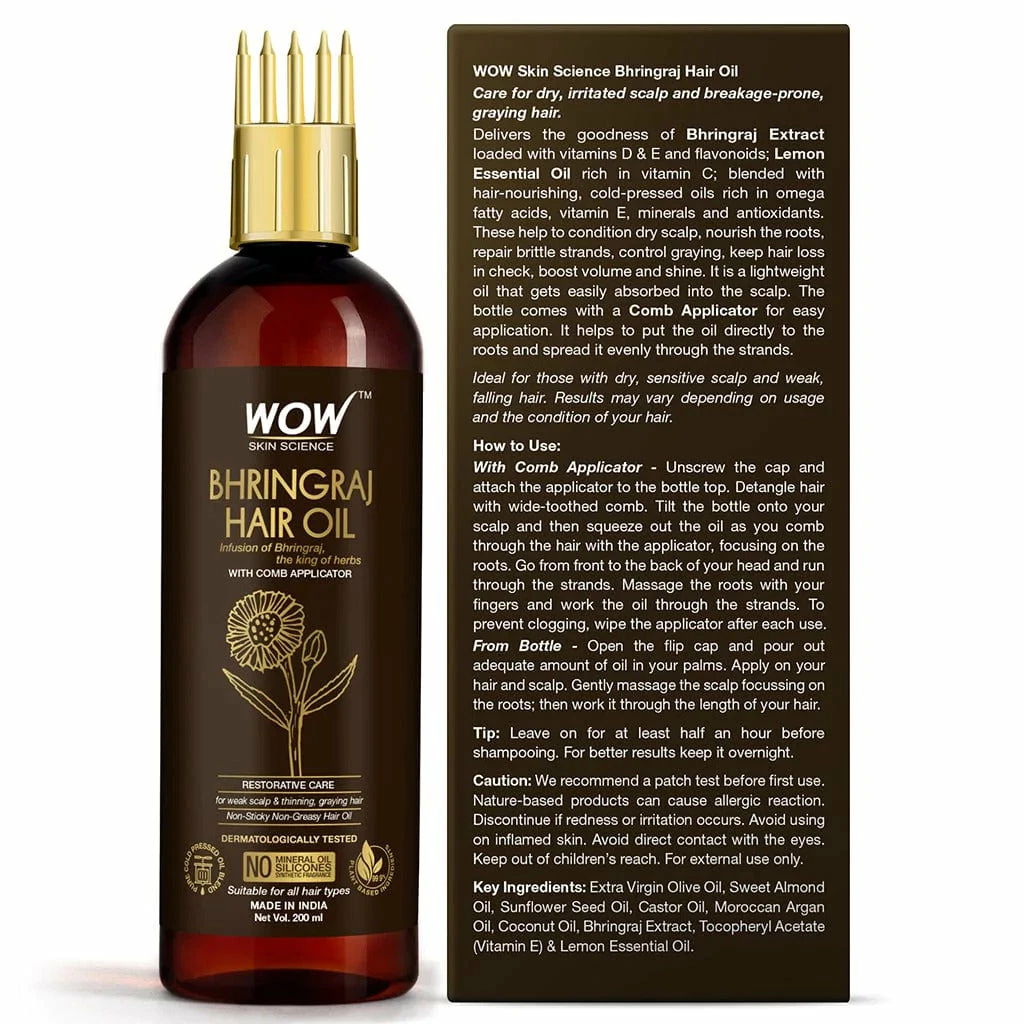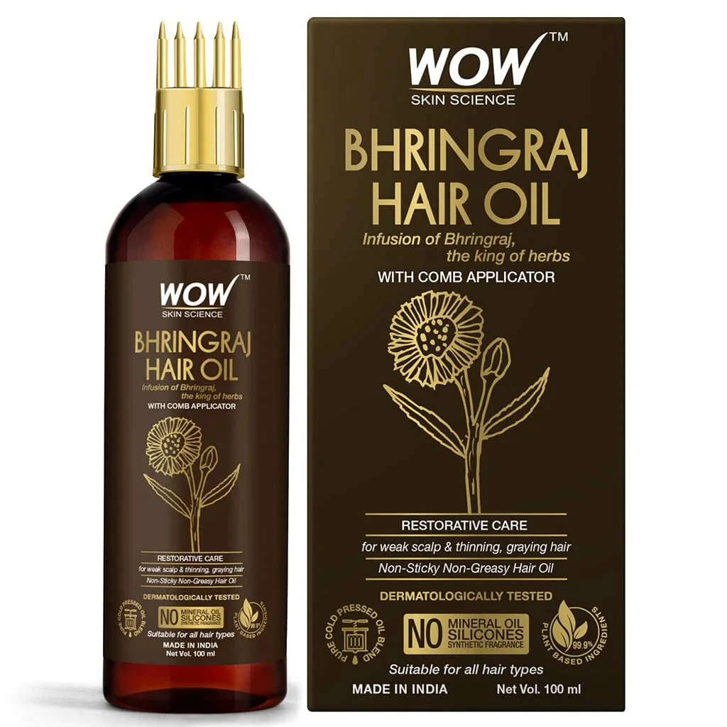 WOW Skin Science Bhringraj Hair Oil is made from natural actives and contains no mineral oil, parabens, or color.