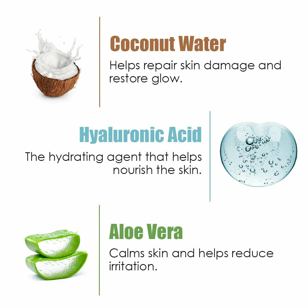 It has coconut water and aloe vera that help to protect the skin’s natural moisture barrier and calm irritated skin.