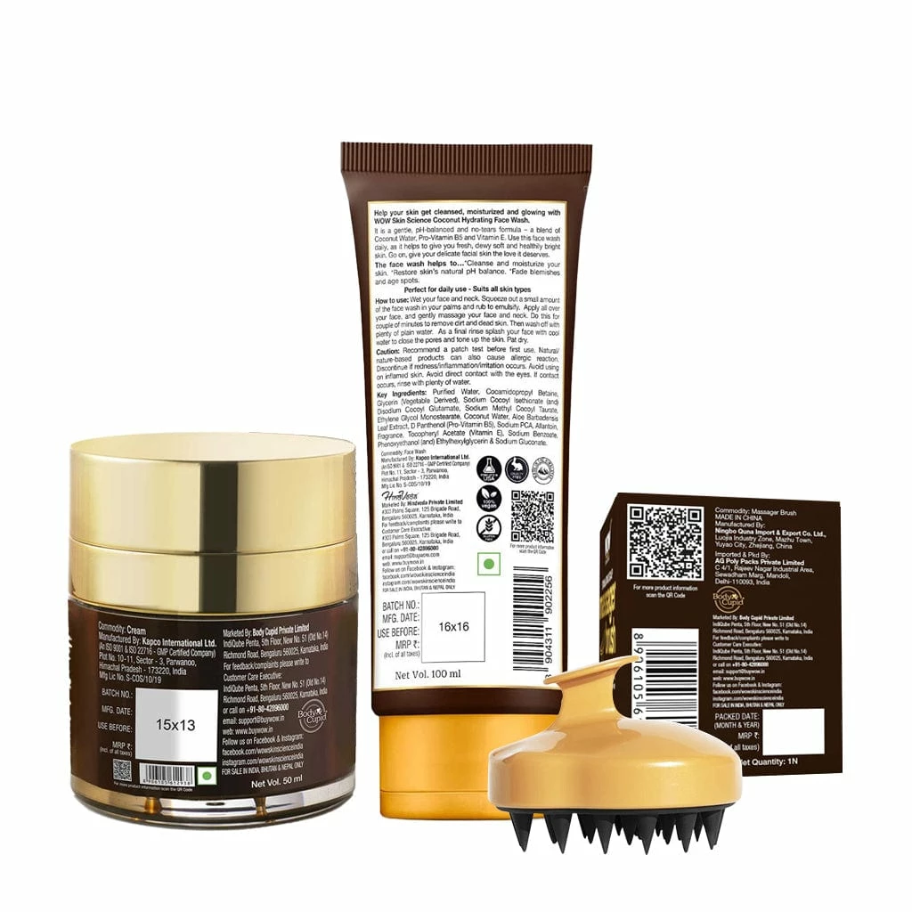 Feel your skin get really cleansed, moisturized and glowing withWOW Skin Science Coconut Hydrating Face Wash. It is infused with coconut water, aloe vera extract, argan oil and hyaluronic acid that help to refresh, tone, moisturize and protect skin from environmental damage. It washes away dirt and pollutants without drying your skin. It leaves the skin hydrated and soft as the actives help to replenish lost moisture to your skin. The face wash also helps to clear blemishes and give you more even-toned skin. It cleanses and helps to restore skinโs natural pH balance, fade blemishes and age spots. It helps to add glow and suppleness to your skin.