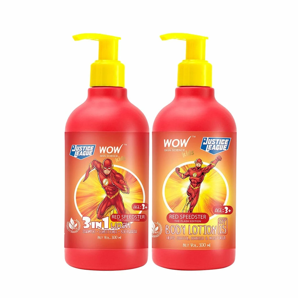 It’s bath time with your favourite superhero! Re-energize your system with The Flash and enjoy a super sudsy, scrub-a-dub with WOW Skin Science Kids Red Speedster 3-in-1 Wash. It delivers the goodness of orange peel extract, avocado oil, and calendula flower extract. Orange peel is rich in flavonoids, and vitamin C that help to protect skin from damage by free radicals. It helps to repair and boost skin and hair. Avocado oil has lots of the skin-nourishing essential fatty acids and minerals that protect your skin’s moisture barrier. It conditions your hair and gives it a soft sheen. Calendula Flower Extract is loaded with phytochemicals and lipids that help to repair any skin damage, and soothe rough, dry skin. It also protects your scalp and strands.