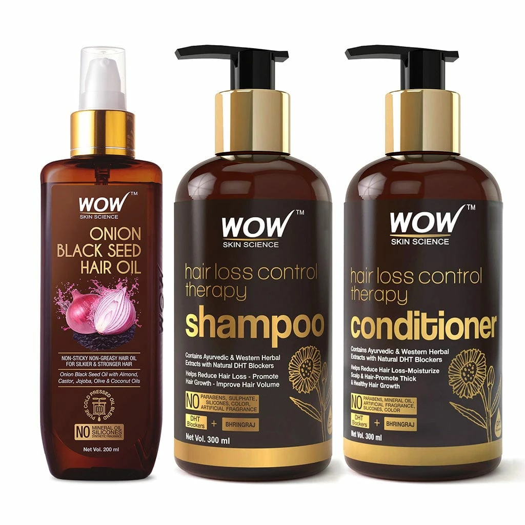 WOW Skin Science Hair Loss Control Therapy Shampoo with advanced and powerful anti-hair loss action that reduces hair fall by naturally blocking the DHT hormone proven by research to be responsible for hair loss.