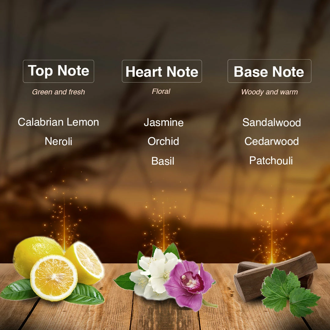 The dusty, mystical evenings of the city of Tanjore are beautifully encapsulated in the floral and sultry tones of Tanjore Twilight. It carries the elegant essence of the refreshing Calabrian lemon, rich jasmine and woody sandalwood. It’s the perfect way to belong to a moment in nature through a spritz of luxury.