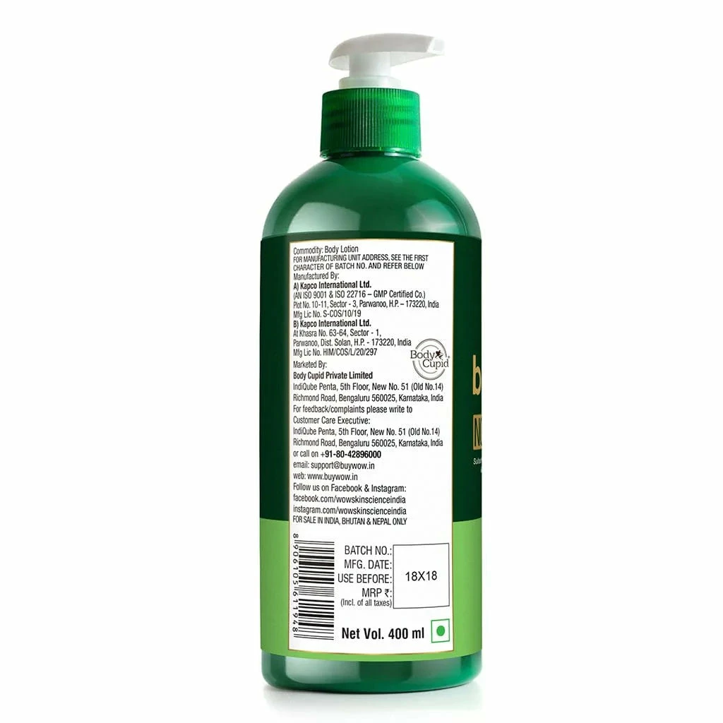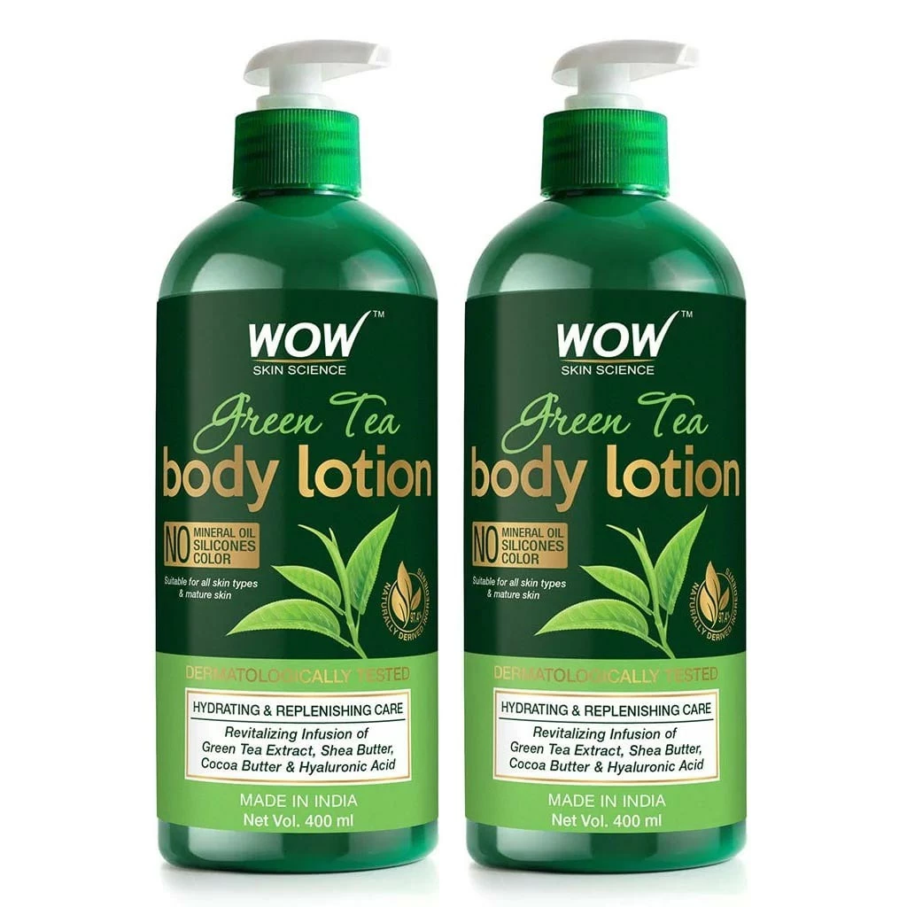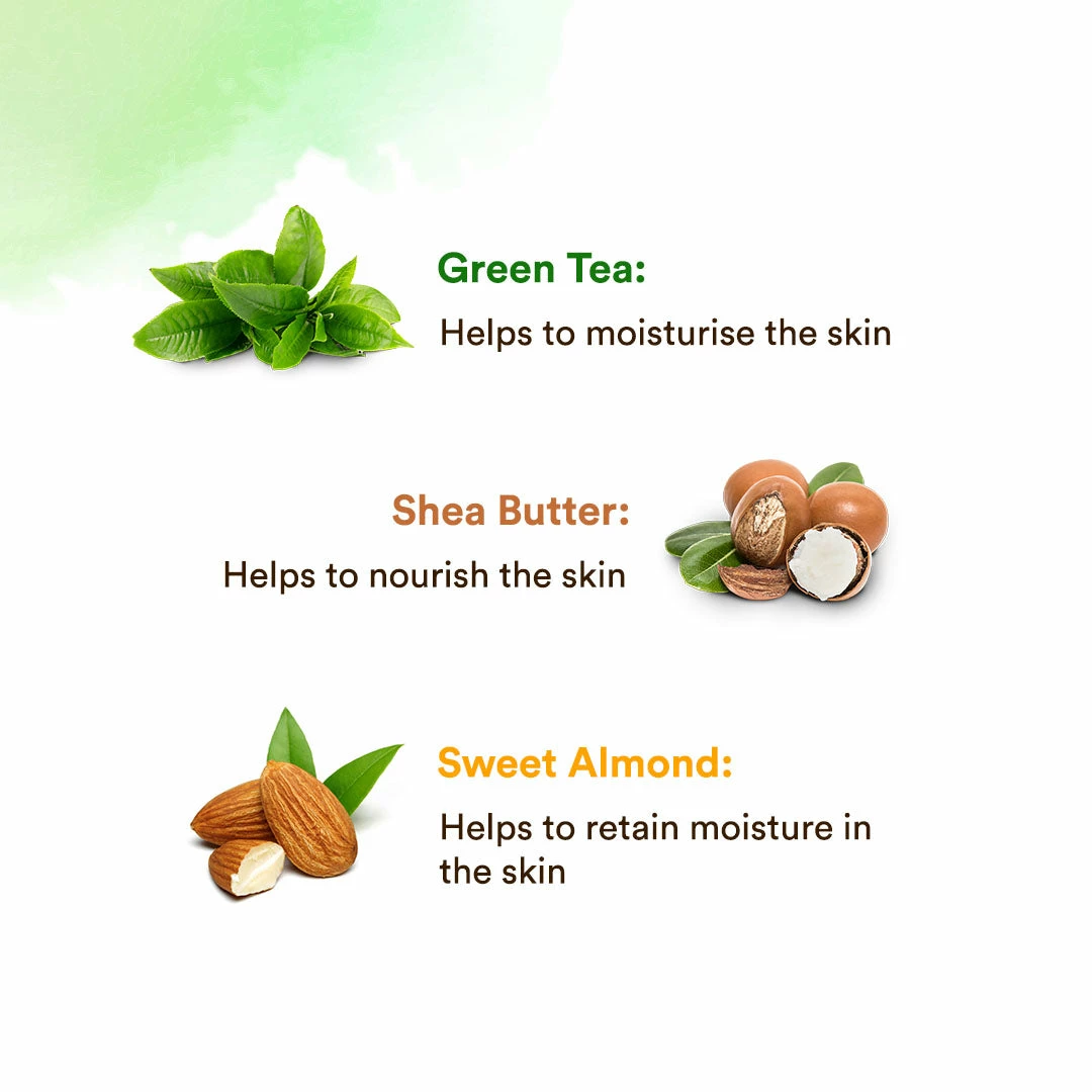 Our green tea body lotion is rich in vitamin B12 and antioxidants; neutralizes free radicals, moisturizes, and restores the skin’s natural pH balance. It contains a revitalizing infusion of green tea extract, sweet almond oil, hyaluronic acid, shea butter, and cocoa butter. These improve skin elasticity and restore the skin’s natural moisture barrier. The mild fragrance of the lotion energizes your senses. It is suitable for all skin types. Our green tea body lotion is free of mineral oil, parabens, and silicones. Our green tea body lotion is restore lost moisture and revives the dull, dehydrated, and rough skin of your body. The actives help to hydrate and nourish dehydrated skin, reduce redness and skin irritation, repair skin damage, and maintain collagen levels. It helps to prevent skin damage and keep pre-mature aging in check. It helps to even out patchy skin tone. It gives your skin a velvety smooth radiance and youthful softness. It is dermatologically tested.