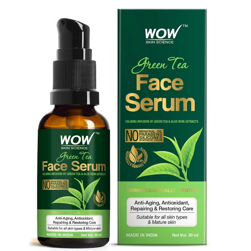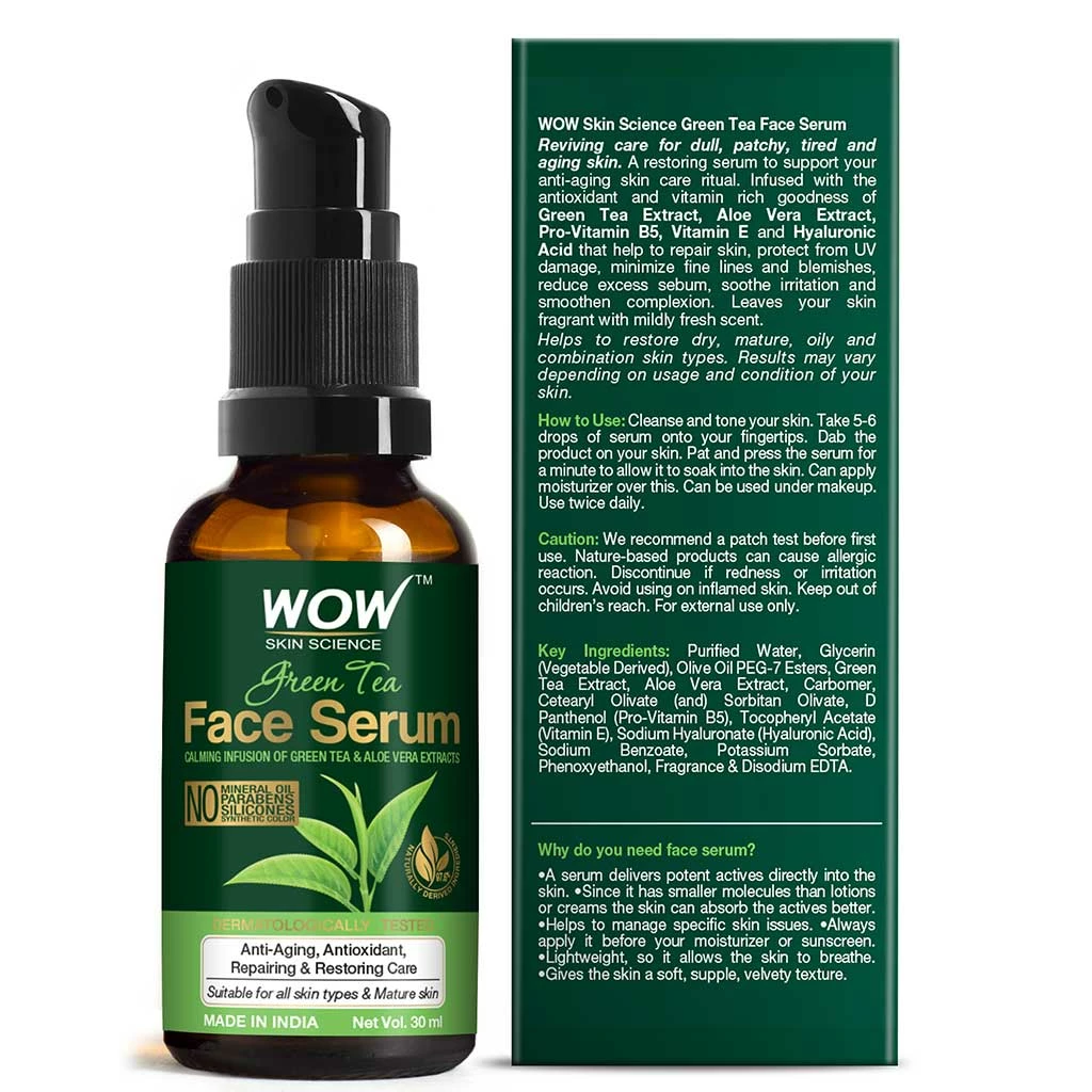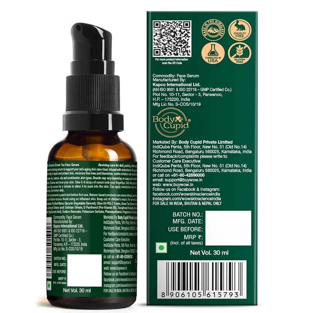 When your skin looks tired and dull, and fine lines are visible, it is time to bring it back to life with a shot of our green tea face serum which is formulated to restore your lackluster, aging, and blemished skin. It is infused with the antioxidant and vitamin-rich goodness of Green Tea Extract, Aloe Vera Extract, Pro-Vitamin B5, Vitamin E, and Hyaluronic Acid. It has a high concentration of natural actives and is pH balanced. It is a lightweight and moisturizing serum to support your anti-aging skin care ritual. Use our green tea face serum twice a day after cleansing your face to get supple, soft, and fresh-looking skin. You need to be regular in using it to see the difference. It is suitable for all skin types. It contains no silicones, mineral oil, or parabens and is made in the beautiful valley of The Himalayas.