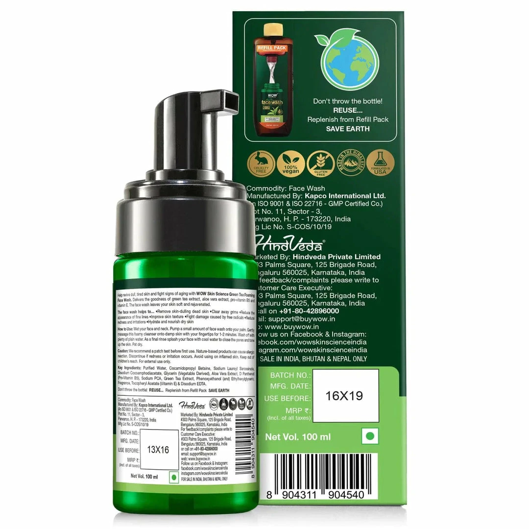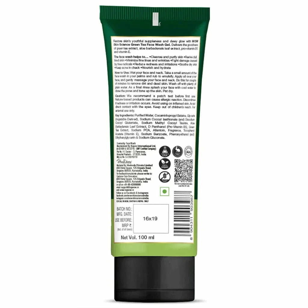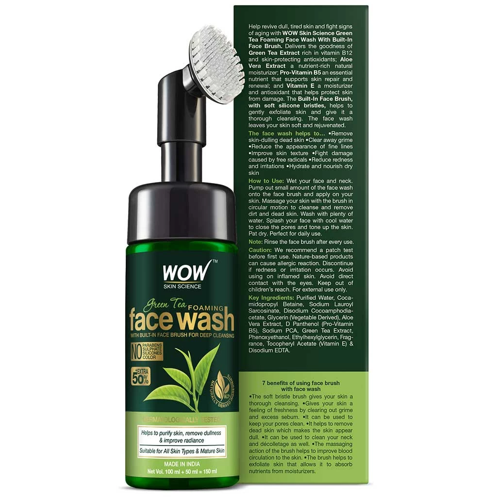WOW Skin Science Green Tea Face Wash is free from parabens, silicones, sulfates, and colors and suitable for all skin types.