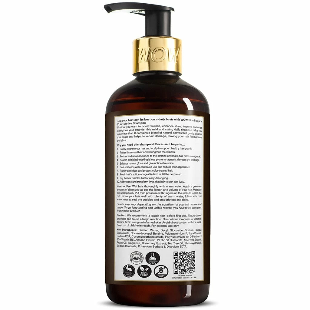 WOW Skin Science Miracle 10-in-1 Shampoo is a premium sulphate-free & paraben-free shampoo that delivers 10 hair benefits including adding healthy volume to your hair.