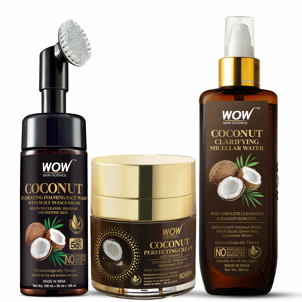 Get rid of stale makeup and thoroughly cleanse your skin with WOW Skin Science Coconut Super Rich Micellar Water is based on gentle and skin-boosting micellar water (oil-in-water emulsion) technology where small cleansing oil molecules pull out dirt and grime deep-seated in the skin. This coconut water infused micellar facial water effectively wipes away pollutants and makeup without hurting the skin’s natural moisture barrier and protective oils. This water is ideal for removing heavy and waterproof makeup. It helps to balance skin, clarify pores and keep acne in check.