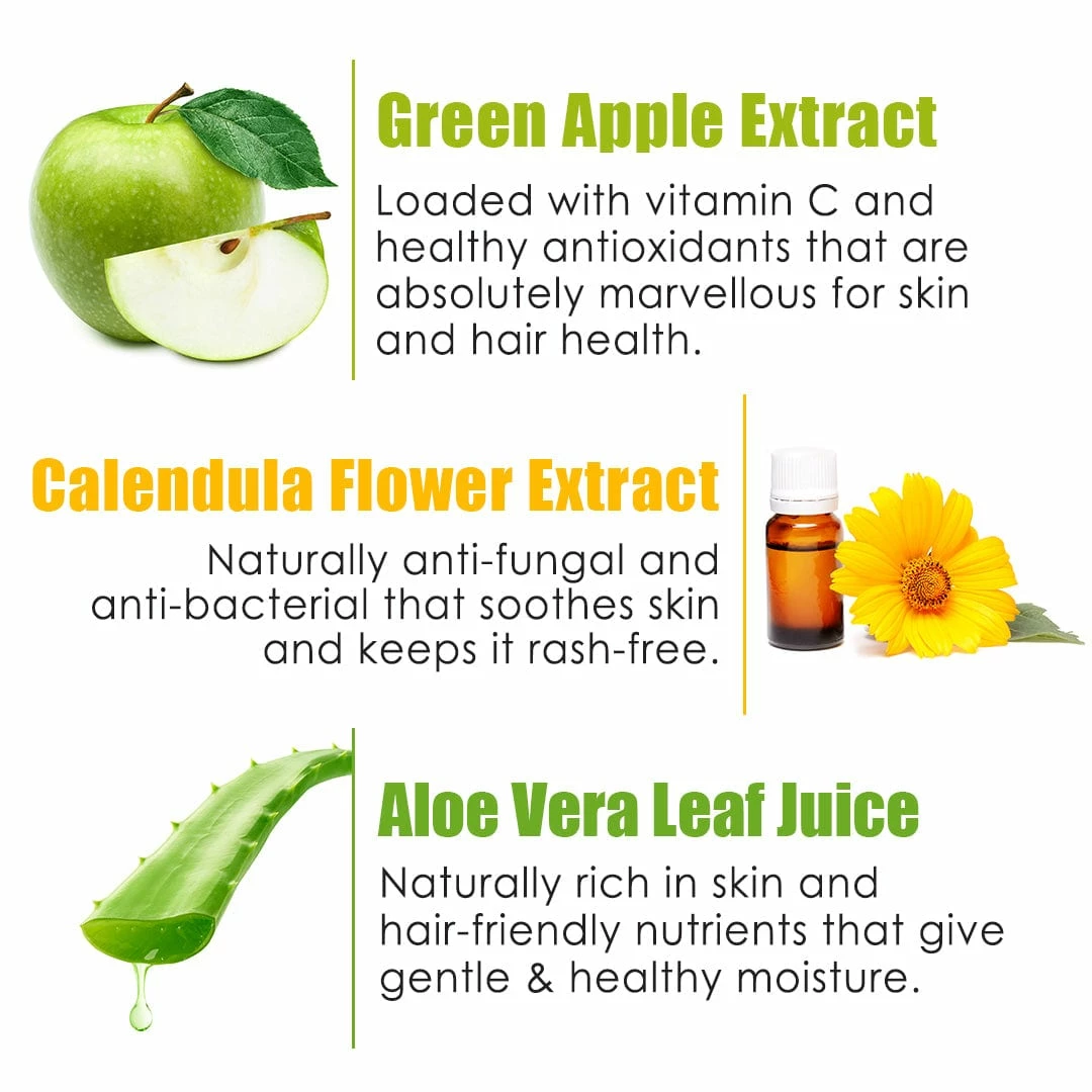 Awesome apple fragrance that makes kid feel happy and refreshed. Contains pure Green Apple Extract for natural and healthy skin and hair care.