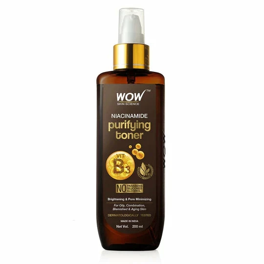 Niacinamide toner is a specially formulated toner that removes impurities and residue from cleansed skin, unclogs pores, tones and refreshes skin. It delivers the goodness of 5% Niacinamide, Witch Hazel, Cucumber, Aloe Vera and White-Water Lily Flower Extract. It has 97.8% of naturally derived ingredients. The key active Niacinamide is a form of vitamin B3 that boosts ceramide levels, and balances skin’s lipid layer. Use twice daily after washing your face to maximize the benefits of the toner. Results may vary depending on usage and condition of your skin. It is dermatologically tested and is made in the beautiful mountain valleys in The Himalayas. WOW Skin Science Niacinamide Toner contains no parabens, sulfate, color, or silicones.