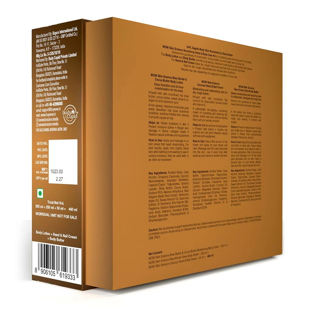 Made with a blend of natural ingredients and specially formulated to deeply hydrate and moisturise your skin, this combo helps to diminish skin damage and dryness and gives your skin the suppleness and bounce it deserves. Cocoa Butter Body Lotion and Raw African Shea Butter are infused with the richness of Shea and Cocoa Butter, Argan and Sweet Almond Oils, Beetroot Extract and Hyaluronic Acid and gives you smoother skin with improved elasticity. Coconut Hand Nail Cream treats chapped skin while delivering hydration and nourishment. Gift this box to a loved one to give them nature’s care, so they can look WOW, naturally