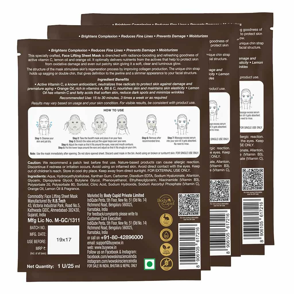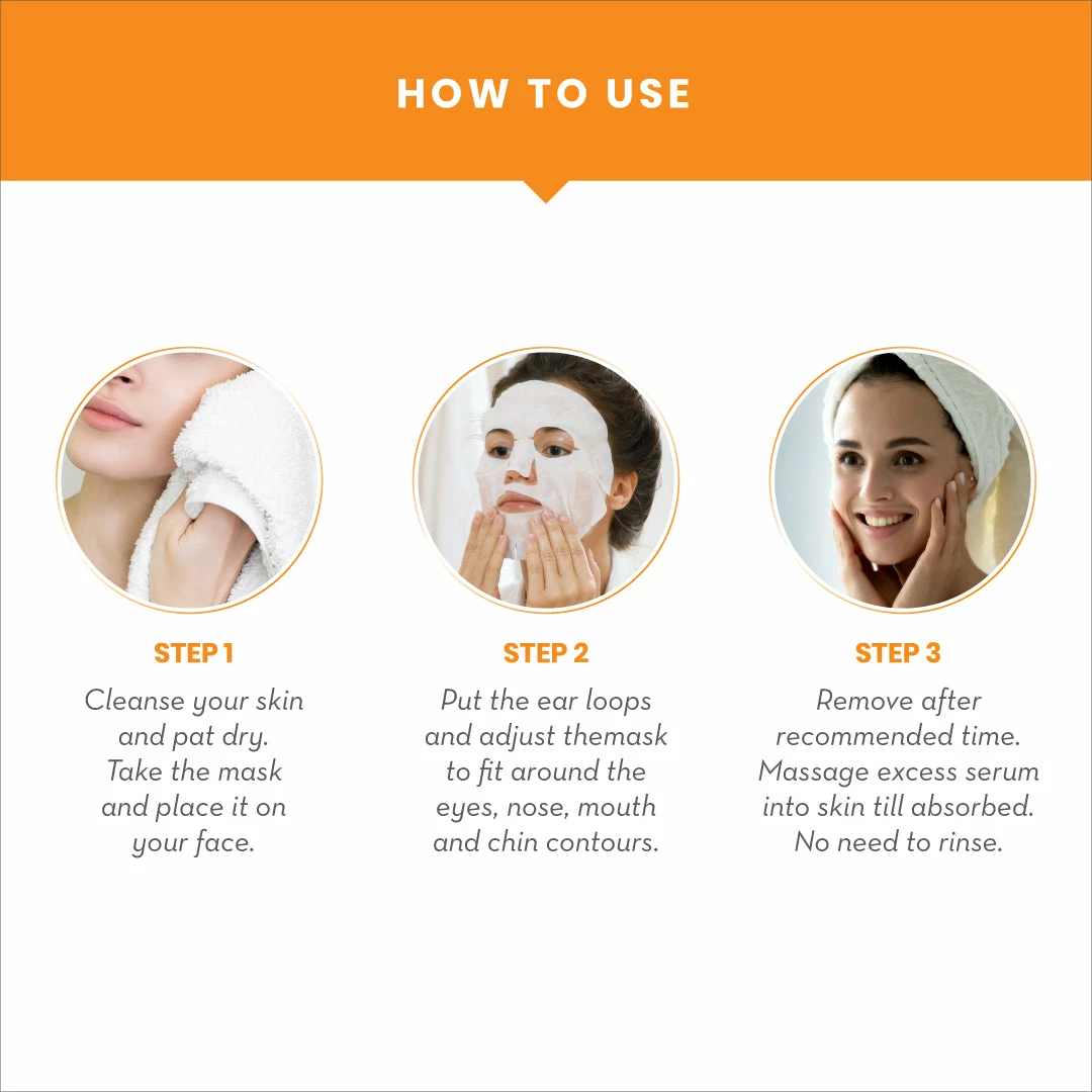 This Vitamin C Brightening Sheet Mask helps firm up skin, reduces sagging skin and tones the double chin.