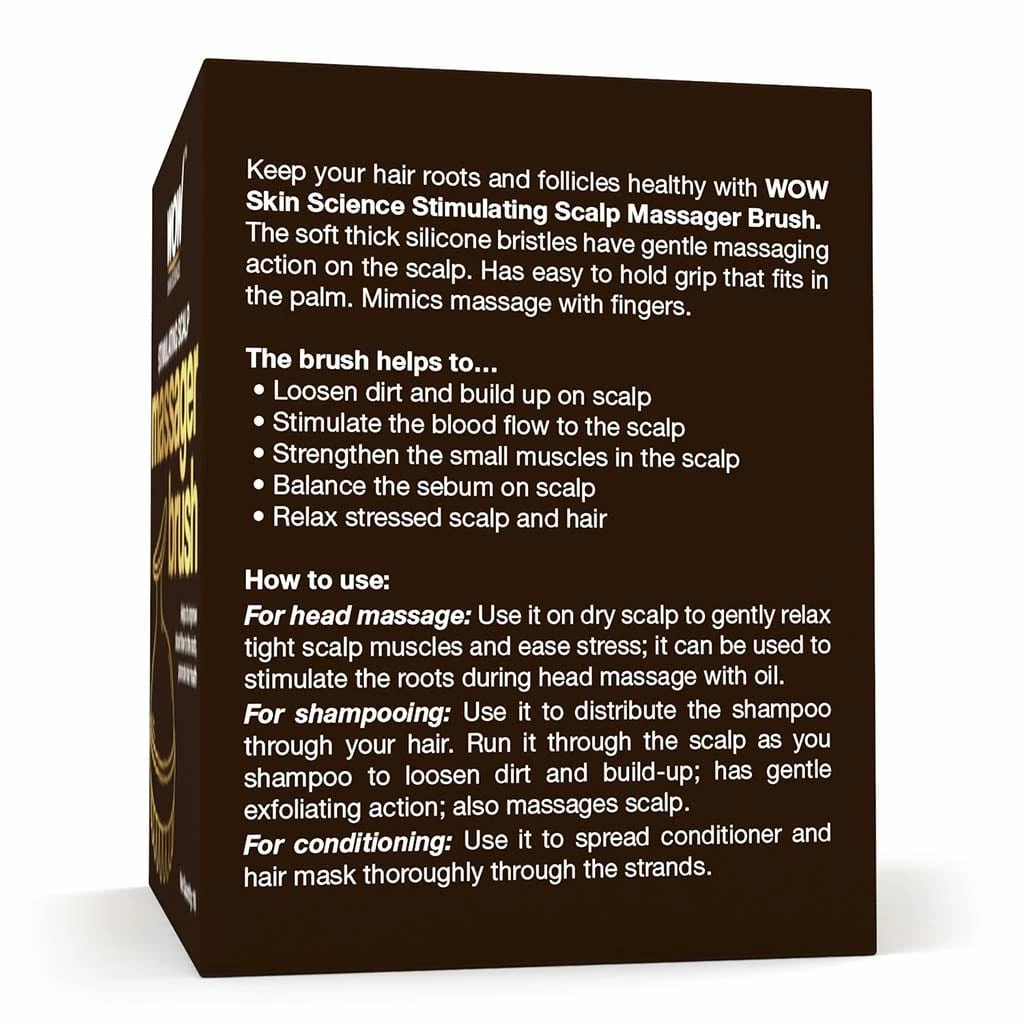 Our WOW Skin Science Scalp Massager Brush is an excellent addition to your hair care routine. We’ve designed it with an ergonomically-efficient handle that perfectly fits your hand to give you maximum control. The scalp massager comes with soft, thick silicone bristles to stimulate scalp circulation to encourage natural hair growth. We’ve designed our scalp massaging shampoo brush with an ergonomically-efficient handle that perfectly fits your hand. The scalp massager comes with soft, thick silicone bristles for a soothing, relaxing massage on your scalp. Whether you want to use your scalp massage brush for hair growth or dandruff, using it during every shampoo application will ensure the best care for your hair.