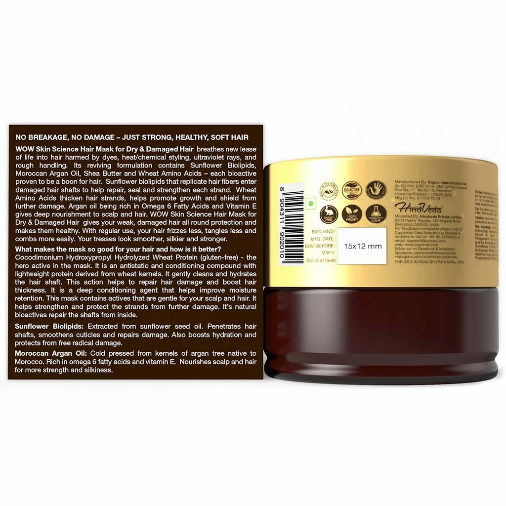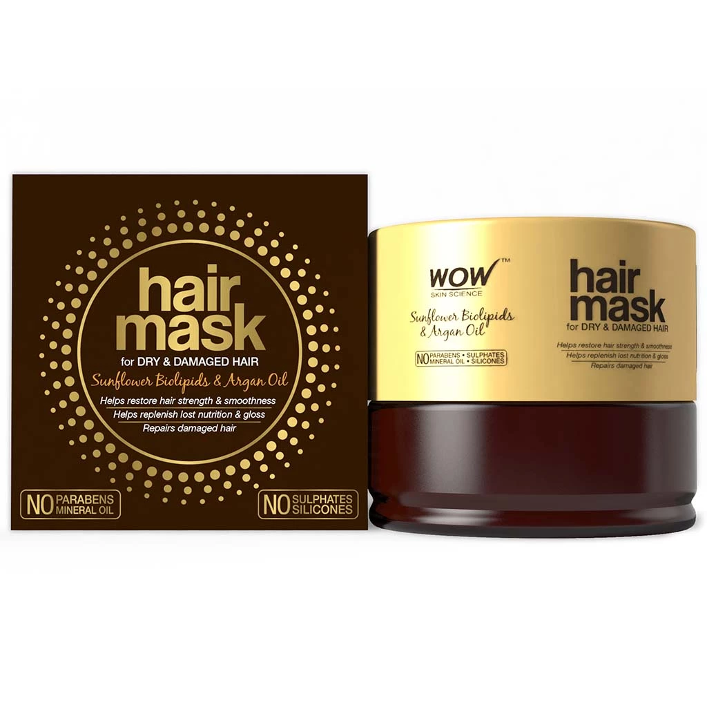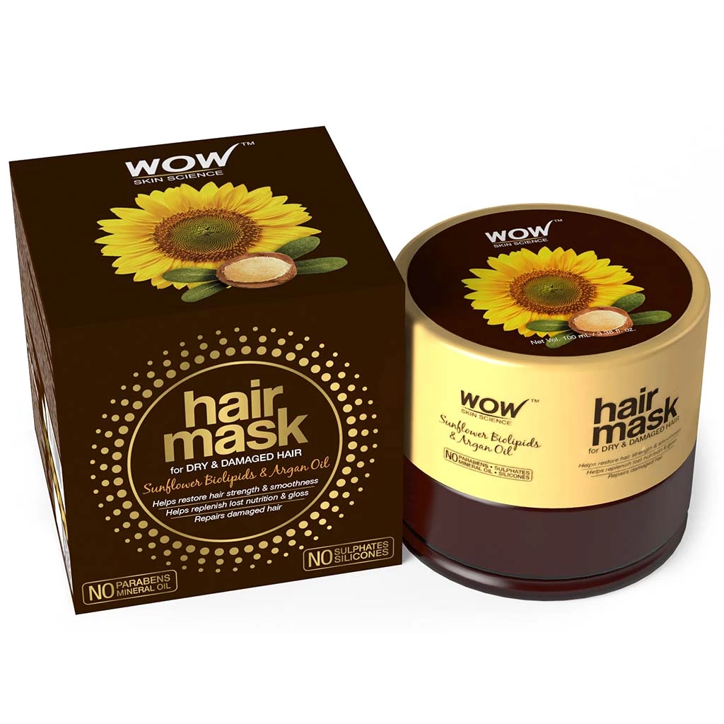 WOW Skin Science Hair Mask for Dry & Damaged Hair breathes new lease of life into hair harmed by dyes, heat/ chemical styling, ultraviolet sun rays, and rough handling. Its healing and reviving formulation contains Sunflower Biolipids, Hydrolyzed Wheat Protein & Argan Oil – each bioactive proven to be a boon for hair. Sunflower biolipids being similar to hair fibers enter damaged hair shafts to help repair, seal and strengthen each strand. Hydrolyzed Wheat Proteins thicken hair strands and shield from further damage. Argan oil being rich in Omega 6 Fatty Acids and Vitamin E gives deep nourishment to the scalp and hair. With regular use of this Hair Mask, your hair frizzes less, tangles less and combs more easily. Your tresses look smoother, silkier and stronger.