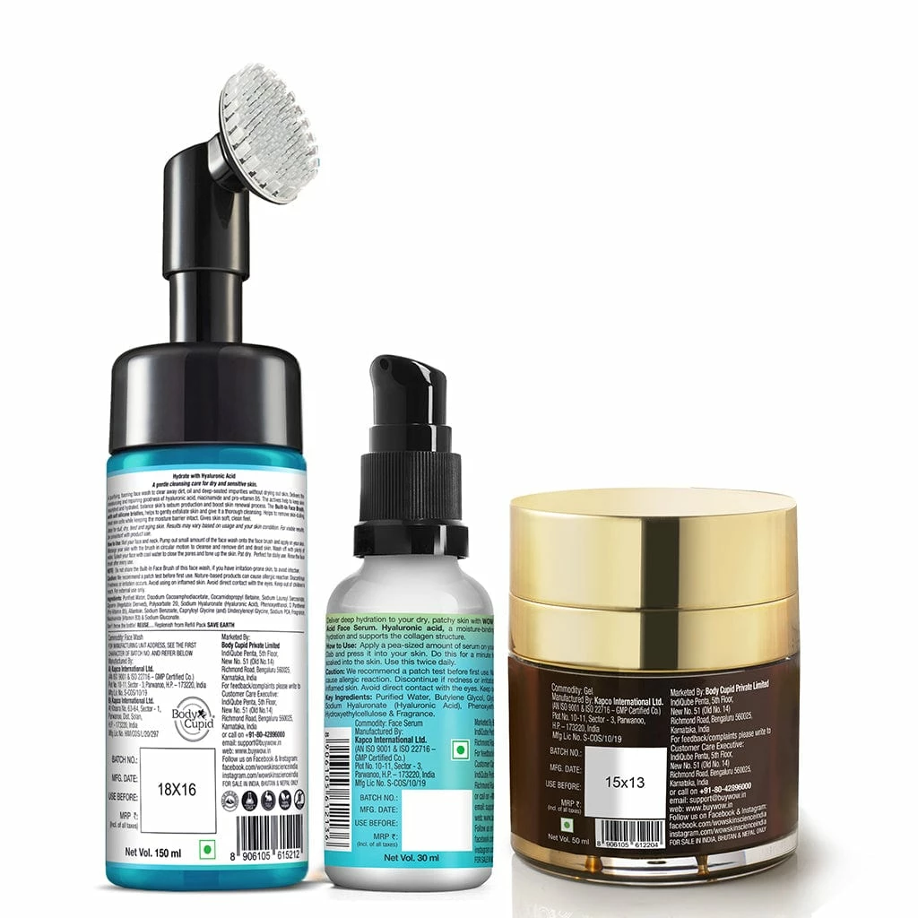Restore healthy glow and moisture to your dry, dehydrated, tired and aging skin with WOW Skin Science Hyaluronic Acid Foaming Face Wash With Built In Brush. It is a rejuvenating foaming wash that removes deep-seated impurities, dirt, excess oil to give skin a velvety smooth, squeaky-clean feel. It is a moisture-boosting and restoring face wash that deeply cleanses your skin, balances sebum and moisture levels on the skin leaving it smooth, glowing and velvety soft. It is ideal for dry, dehydrated, tired and aging skin and gives your complexion a radiance boost. The Built-In Face Brush, with soft silicone bristles, helps to gently exfoliate skin and give it a thorough cleansing. Gives skin soft, clean feel. It delivers the benefits of hyaluronic acid, niacinamide and pro-vitamin B5 that help to repair and maintain skinβs moisture barrier, control excess sebum, calm redness, and minimize spots and blemishes. Regular use ensures the fine lines, blemishes and dryness are reduced and skin looks refined and supple. Use the face wash twice a day to keep your skin clear of dirt, impurities and pollutants. The face wash has 97.9% naturally derived ingredients. Hyaluronic Acid is a natural polysaccharide that retains moisture and enhances skinβs collagen structure and firms up skin. Niacinamide is a form of vitamin B3 that boosts ceramide levels, repairs damage and balances skinβs lipid layer. Pro-Vitamin B5 also called D-Panthenol, improves skin renewal process, minimizes fine lines and improves skin elasticity.