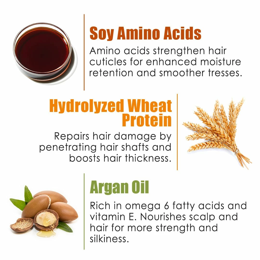 Hydrolyzed Wheat Protein, Wheat & Soy Amino Acids & Moroccan Argan Oil enable intensive hydrating and nourishing care.
